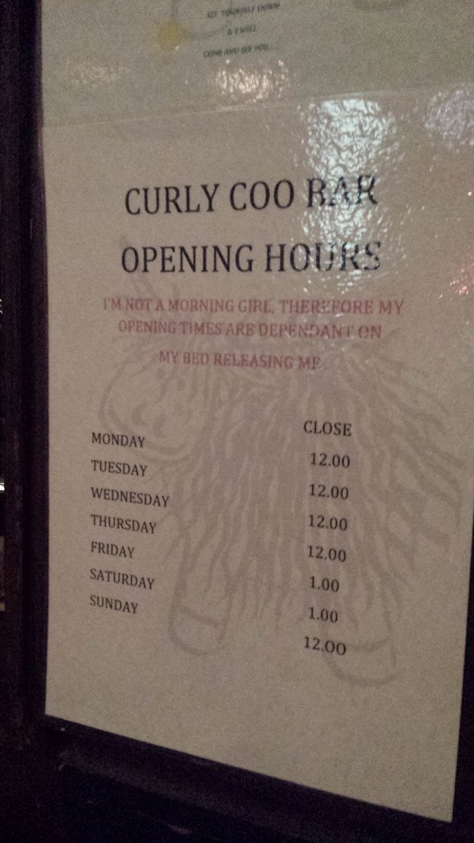 Curly Coo Bar Menu